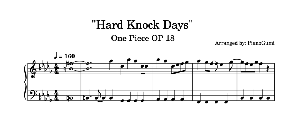 One Piece Op 18 Hard Knock Days Piano Sheet Music